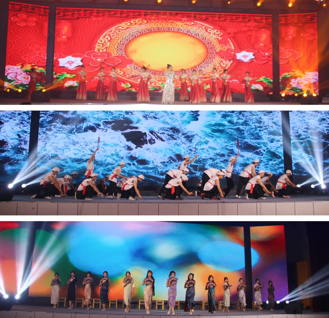 整场演出内容丰富,分为“雅韵传薪 铸文化自信”“青春飞扬 创时代新声”“匠心筑梦 绘职教新章”三大篇章。机械工程系的舞蹈《桨起砺行》展现力与美的融合,信息工程系的国风爵士《金陵十三钗》以现代舞姿诠释历史,艺术设计系的黎族舞蹈《声声回响》带来清新自然之风,财经商贸系的朗诵《唐诗里的中国人》引发深沉文化共鸣。