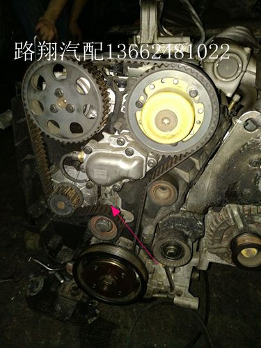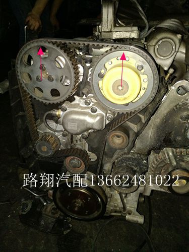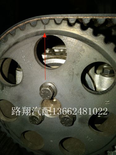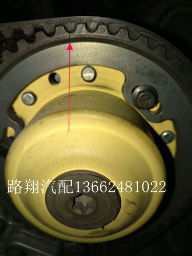 沃尔沃S80对正时前,要将一侧的凸轮轴感应拆下来,另一侧的凸轮轴防尘盖拆下来,看下2边的凸轮轴键槽是不是在同一水平面上并且平行于地面(如图1),满足上述条件,用专用工具对准键槽卡进,再拆固定正时皮带轮的螺丝松开,顺时针转动皮带轮,将2个皮带轮上的记号,垂直水平面即可(如图2/3/4),锁紧螺丝。正时带有液压自动张紧装置,再次转动皮带轮,如果张紧器能转动或者回位(如图5),证明此次完工。否则微调。